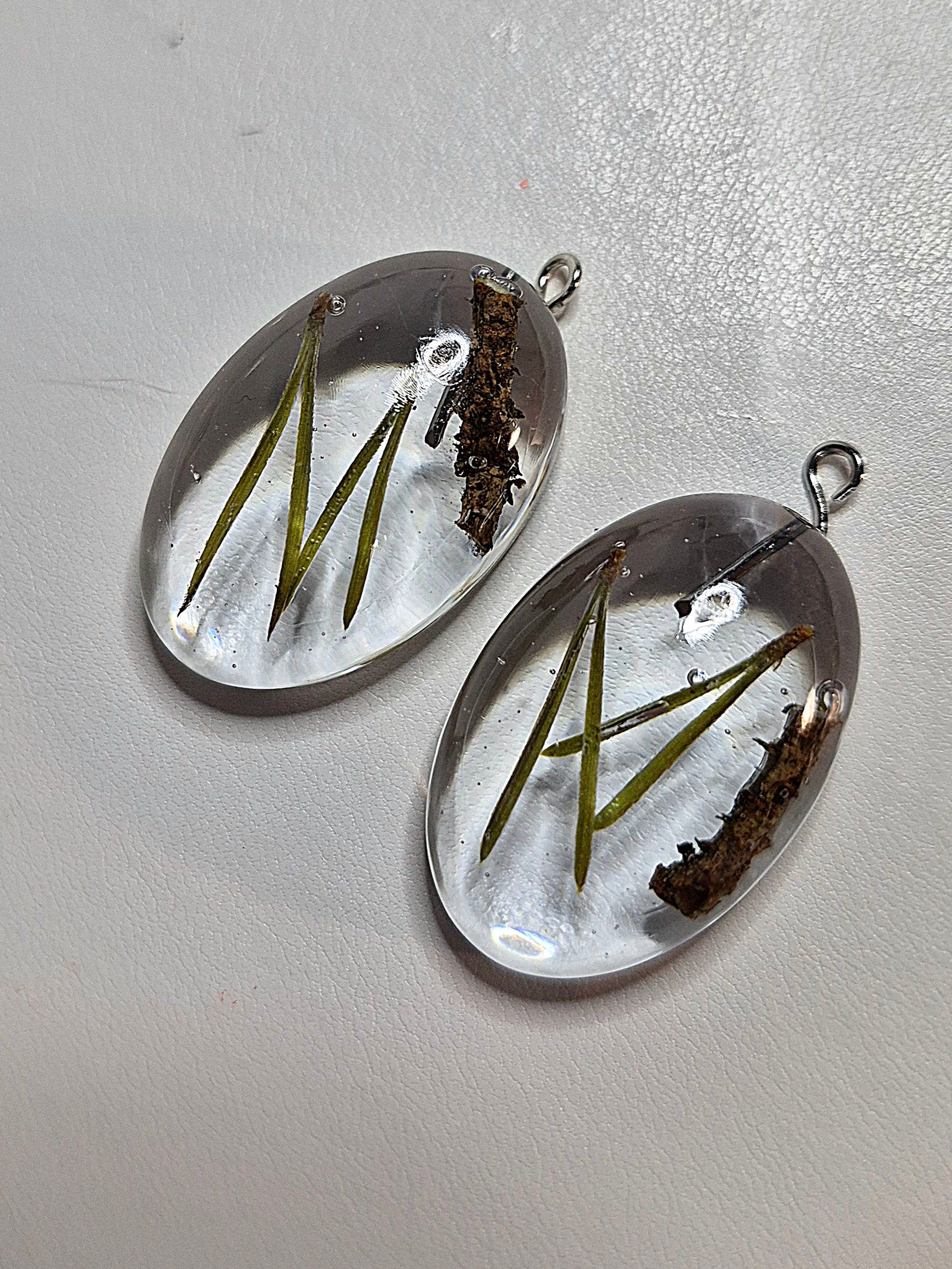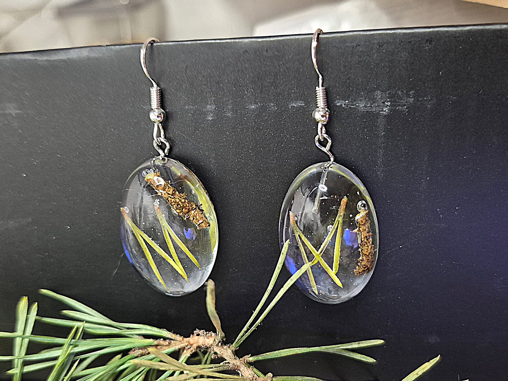 Örhängen med tallbarr.