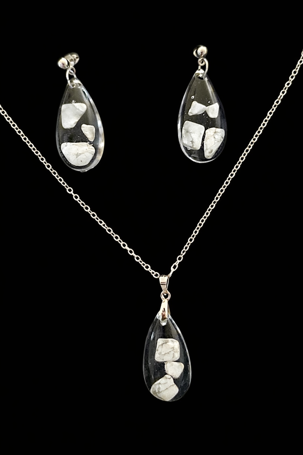 Örhängen och halsband med howlit.